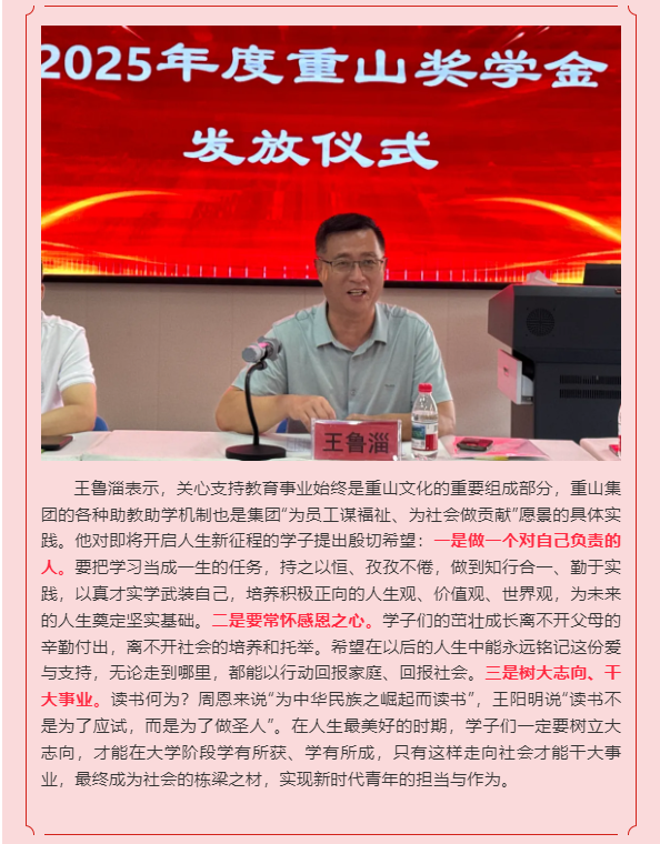 【頭條】金秋筑夢 愛責(zé)同行—重山集團舉行2025年度重山獎學(xué)金發(fā)放儀式