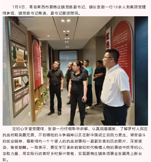 青島萊西市夏格莊鎮(zhèn)領(lǐng)導(dǎo)到集團(tuán)參觀