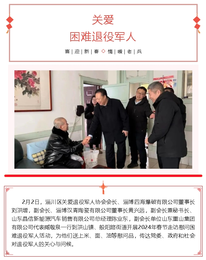 重山集團參加淄川區(qū)關(guān)愛退役軍人協(xié)會春節(jié)走訪慰問困難退役軍人活動