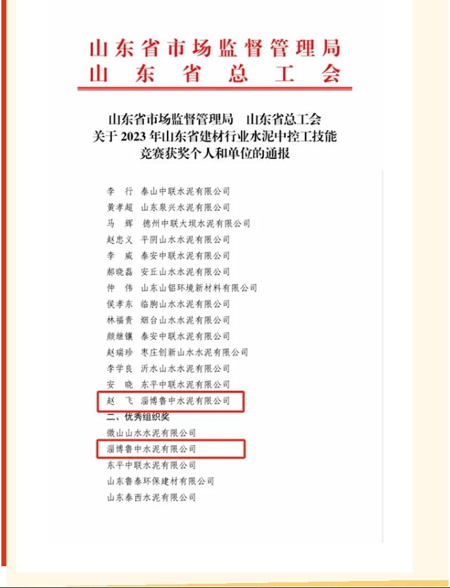 【榮譽(yù)】魯中水泥趙飛榮獲省建材行業(yè)水泥中控工技能競(jìng)賽三等獎(jiǎng)