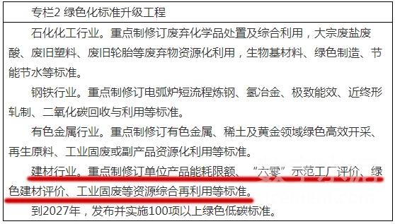 重點(diǎn)制修訂單位產(chǎn)品能耗限額、“六零”示范工廠評(píng)價(jià)、綠色建材評(píng)價(jià)、工業(yè)固廢等資源綜合再利用等標(biāo)準(zhǔn)。