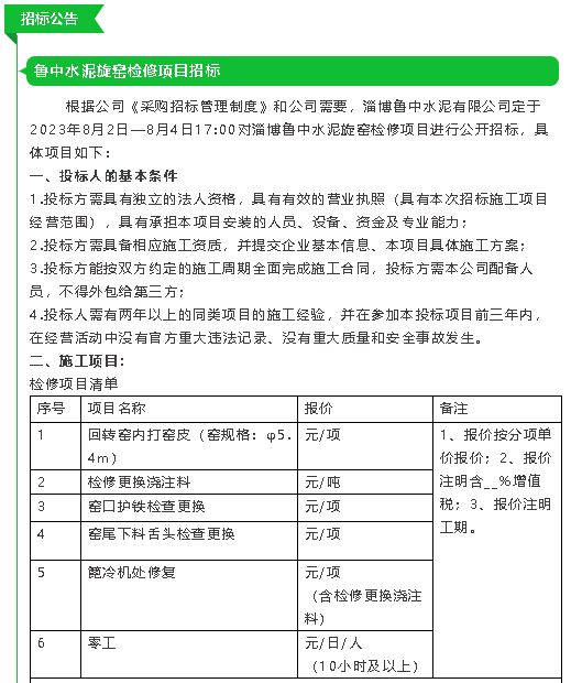 【招標公告】魯中水泥、重山光電