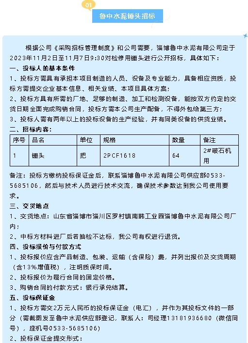 【招標(biāo)公告】魯中水泥