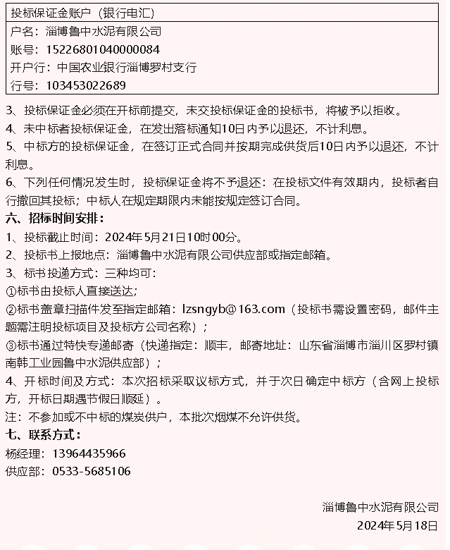 【招標(biāo)公告】魯中水泥