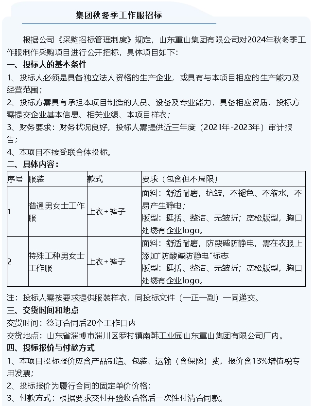 【招標(biāo)公告】集團(tuán)公司、魯中水泥