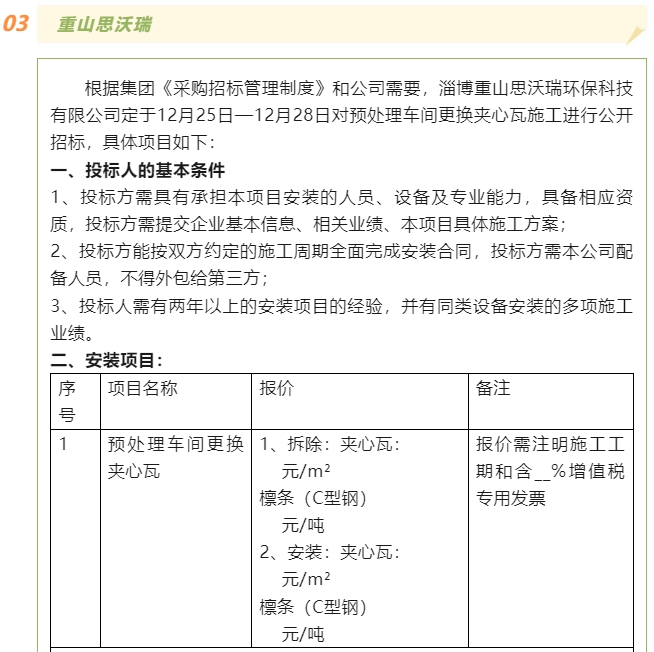 【招標公告】魯蒙水泥、魯中水泥、重山思沃瑞