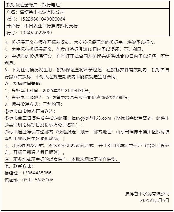 【招標(biāo)公告】魯中水泥