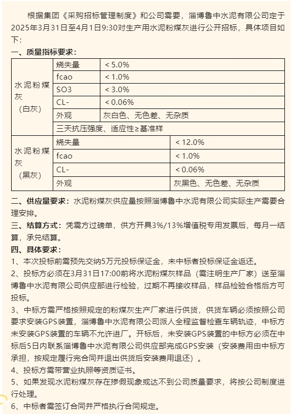 【招標公告】魯中水泥
