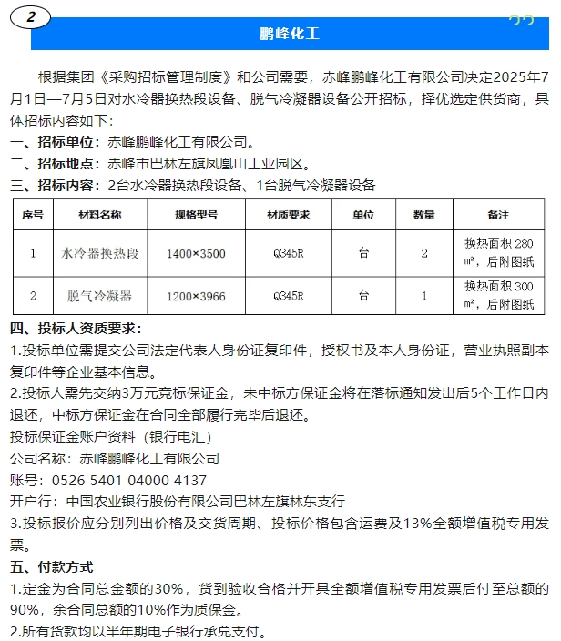 【招標(biāo)公告】魯蒙水泥、鵬峰化工
