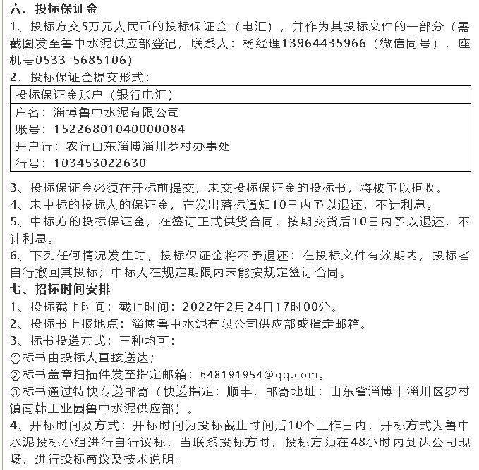 【招標(biāo)公告】魯中水泥羅茨風(fēng)機(jī)、高壓變頻器、提升機(jī)、風(fēng)機(jī)招標(biāo)