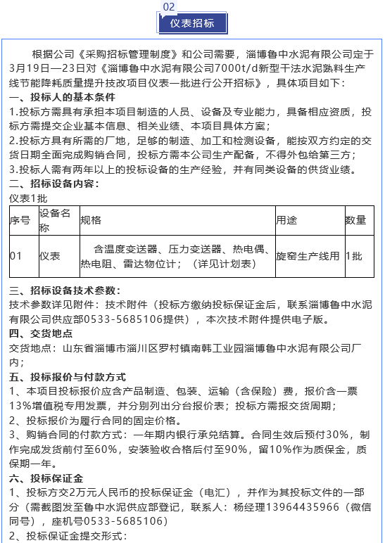 【招標(biāo)公告】魯中水泥