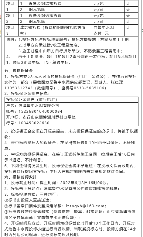 【招標公告】魯中水泥