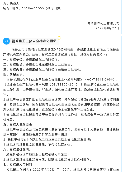 上一篇:【招標公告】鵬峰化工無水氟化氫運輸、二期用伴熱帶及施工費用招標