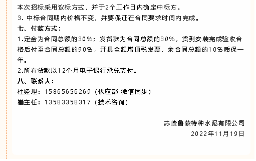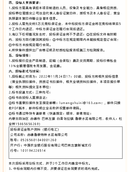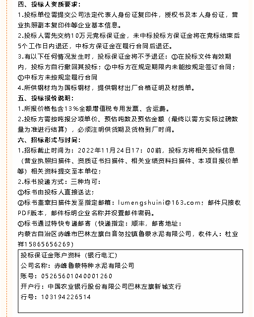 【招標(biāo)公告】魯蒙水泥風(fēng)機(jī)、鋼材、硅酸鈣板、納米隔熱板、錨固件、波紋補(bǔ)償器膨脹節(jié)、電動(dòng)閥門(mén)招標(biāo)