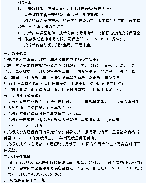 【招標公告】魯中水泥技改工程設(shè)備安裝、運輸招標