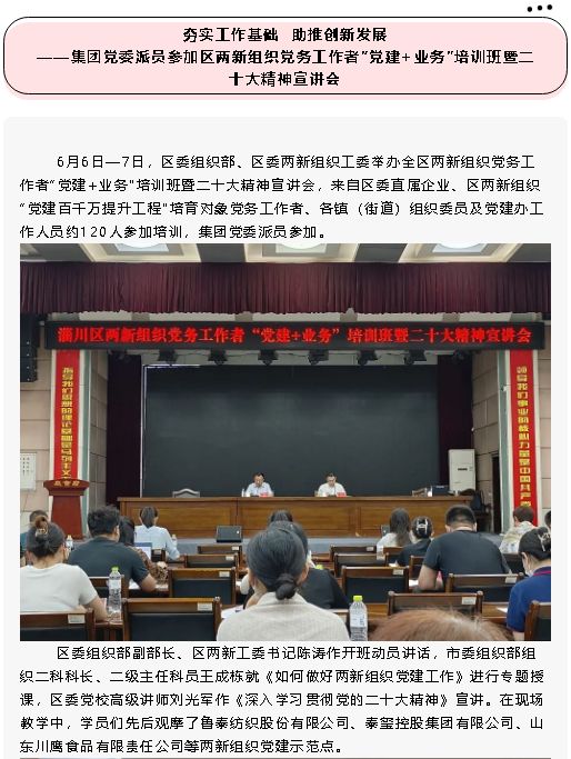 【黨建】夯實工作基礎(chǔ) 助推創(chuàng)新發(fā)展——集團黨委派員參加區(qū)兩新組織黨務(wù)工作者“黨建+業(yè)務(wù)”培訓(xùn)班暨二十大精神宣講會