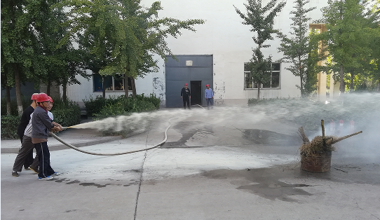 本次演練分為消防知識(shí)講解和現(xiàn)場(chǎng)實(shí)戰(zhàn)滅火兩部分。許亮副廠長首先講解了消防安全知識(shí),并對(duì)滅火器材的使用方法做了現(xiàn)場(chǎng)示范。隨后,在許廠的指揮下,演練小組按照預(yù)定的演練方案,分別采用干法滅火器與消防水槍進(jìn)行消防演練。參加演練人員面對(duì)火情,迅速行動(dòng)、默契配合,手持滅火器、消防水槍將大火及時(shí)撲滅,成功圓滿完成了消防演練活動(dòng)。