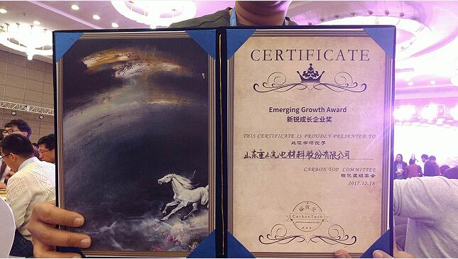 本次大會(huì)就國際、國內(nèi)碳材料的發(fā)展形勢、市場布局、新技術(shù)工藝的應(yīng)用與突破等進(jìn)行了分析與探討,為參會(huì)企業(yè)搭建了一個(gè)產(chǎn)業(yè)、學(xué)術(shù)、研究、資本的高質(zhì)量交流平臺(tái)。重山光電公司積極參與會(huì)議,設(shè)立展臺(tái),對(duì)公司氟化石墨烯、氟化碳納米管等碳材料產(chǎn)品進(jìn)行展示,與產(chǎn)業(yè)同行進(jìn)行互動(dòng)交流。重山光電公司的發(fā)展和碳材料產(chǎn)品贏得了大會(huì)及業(yè)內(nèi)人士的一致認(rèn)可,并榮獲大會(huì)組委會(huì)頒發(fā)的“新銳成長企業(yè)獎(jiǎng)”。