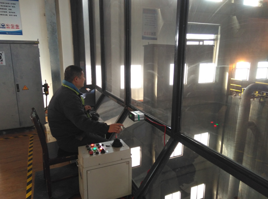 行車工王洪義正在吊裝廢活性炭