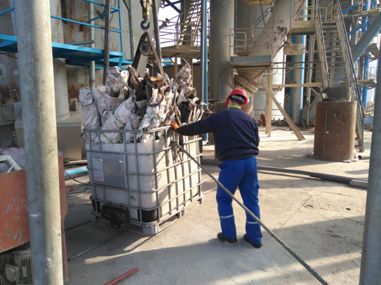 操作工曹世強正在吊運廢噸包