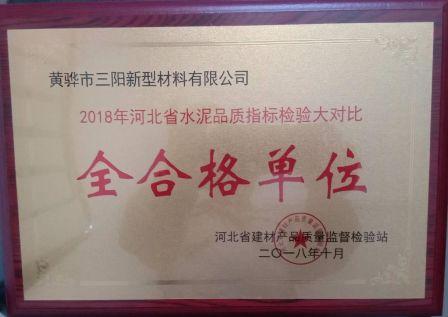 黃驊三陽喜獲得水泥品質(zhì)指標(biāo)檢驗(yàn)大對比全合格單位稱號
