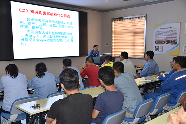 6月12日,集團運營中心組織第二季安全輪訓活動,來自魯中水泥、重山思沃瑞基層員工40余人參加。思沃瑞安環(huán)部經(jīng)理邊延強以PPT形式詳細講解了機械傷害的概念、特點、發(fā)生原因、危險性分析及預防措施等五方面內容,并對企業(yè)實際的機械傷害事故案例做重點分析。參訓人員觀看了相關安全教育視頻,使參訓員工切實感受到安全操作的重要性,杜絕僥幸心理,提高安全意識,為提升員工安全素養(yǎng)和車間安全生產不斷夯實基礎。