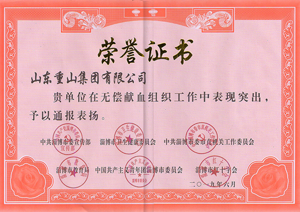 多年來,重山集團始終堅持“為員工謀福祉  為社會做貢獻”的企業(yè)愿景。發(fā)展自身經(jīng)濟的同時,積極參與、關(guān)心、支持無償獻血事業(yè)。2018年,集團積極響應(yīng)淄博市 “全民無償獻血月”的聯(lián)合倡議,組織開展“奉獻點滴之愛  弘揚熱血重山”愛心公益獻血活動,打響了淄博市首屆“全民無償獻血月”第一炮,活動當(dāng)天在李學(xué)董事長的帶領(lǐng)下,150余名重山干部員工獻血58600毫升。以實際行動體現(xiàn)了重山人的責(zé)任和擔(dān)當(dāng),為推動全市無償獻血事業(yè)做出了積極貢獻。