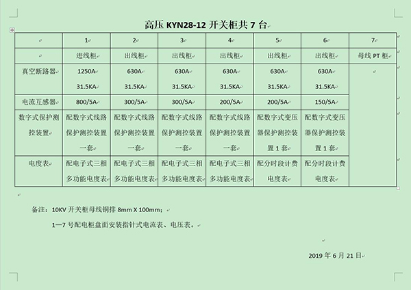 后附配置表,其中真空斷路器按照正泰、泰開或施耐德等品牌分別報(bào)價(jià),數(shù)字式保護(hù)測控裝置無指定品牌要求,報(bào)價(jià)時(shí)注明所報(bào)品牌;