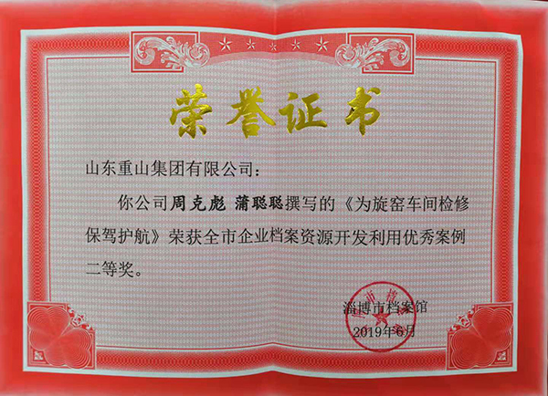 近年來(lái),集團(tuán)公司不斷加強(qiáng)企業(yè)檔案管理、完善檔案資源、建立完善電子檔案系統(tǒng),提高檔案利用水平和查閱效率。近期,集團(tuán)辦公室通過(guò)認(rèn)真準(zhǔn)備,積極申報(bào),經(jīng)過(guò)區(qū)縣檔案館推薦,評(píng)選領(lǐng)導(dǎo)小組評(píng)定等程序,集團(tuán)辦公室周克彪、蒲聰聰撰寫的《為旋窯車間檢修保駕護(hù)航》、《助力重山文化館,重現(xiàn)奮斗歷史》分別榮獲全市企業(yè)檔案資源開發(fā)利用二等獎(jiǎng)和三等獎(jiǎng),據(jù)悉這是全市唯一一家榮獲兩項(xiàng)殊榮的企業(yè)。集團(tuán)辦公室將以此為契機(jī),不斷提高檔案管理水平,豐富檔案資源,不斷滿足企業(yè)檔案的查閱需求,為企業(yè)發(fā)展提供更好的服務(wù)。