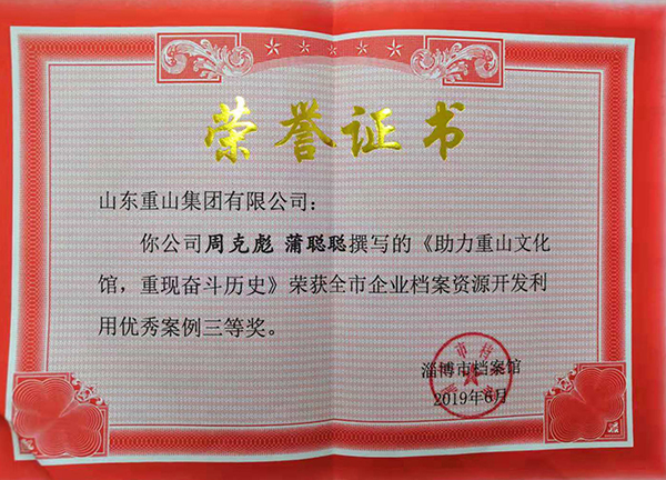 集團(tuán)檔案開發(fā)利用榮獲市級(jí)榮譽(yù)