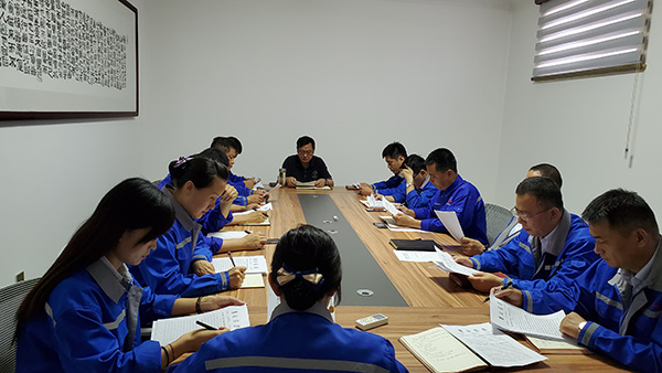 7月20日,魯蒙水泥組織集體學(xué)習(xí),總經(jīng)理周海、副總經(jīng)理楊振峰和班長以上領(lǐng)導(dǎo)干部及重要崗位員工30余人參加。周海傳達貫徹了李學(xué)董事長在上半年工作交流會議上的講話精神,要求各部門要深刻領(lǐng)會董事長講話精神,圍繞綠色發(fā)展、依法治理、文化建設(shè)三大主攻目標(biāo),提高思想站位,統(tǒng)籌謀劃各項工作,并落實到具體工作中。楊振峰宣讀了上半年工作交流會落實意見,要求大家時刻保持謙虛、嚴謹、實事求是的工作原則,抓好安全生產(chǎn)工作,用經(jīng)營數(shù)據(jù)說話,用成績證明,確保下半年經(jīng)營生產(chǎn)任務(wù)順利完成。