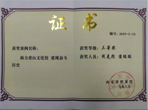 日前,山東省檔案館表彰通報(bào)了全省企業(yè)檔案開發(fā)利用優(yōu)秀案例,由集團(tuán)辦公室周克彪、蒲聰聰撰寫的《助力重山文化館,重現(xiàn)奮斗歷史》的應(yīng)用案例榮獲省級(jí)三等獎(jiǎng)。