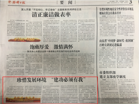 9月28日、10月8日,《淄博日報》、《淄博晚報》、《淄博新聞網(wǎng)》等新聞媒體分別刊發(fā)了重山集團轉(zhuǎn)型升級,堅持綠色質(zhì)量發(fā)展的多篇文章。