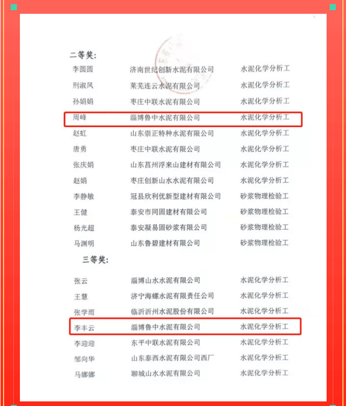 魯中水泥周峰、李豐云榮獲山東省建材行業(yè)職業(yè)技能競(jìng)賽優(yōu)秀選手
