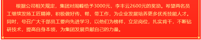 【獎勵(lì)】周峰、李豐云獲集團(tuán)獎勵(lì)