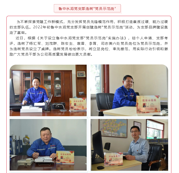 【黨建】魯中水泥黨支部選樹(shù)“黨員示范崗”;魯中、魯蒙水泥黨支部召開(kāi)支委會(huì)