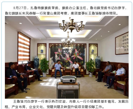 扎魯特旗旗委常委白彥學到重山集團考察指導