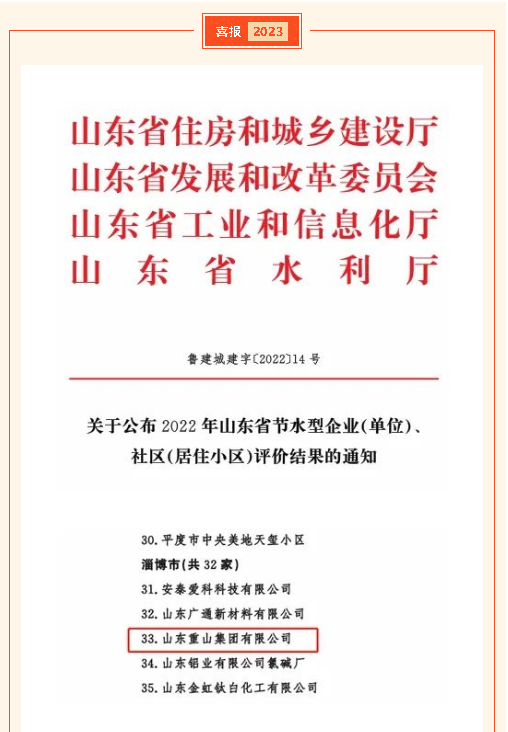 【榮譽】重山集團(tuán)榮獲2022年“山東省節(jié)水型企業(yè)”稱號