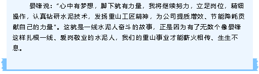 【重山人?重山事】“水泥人”用實踐詮釋工匠精神---記魯蒙水泥粉磨車間主任晏鋒