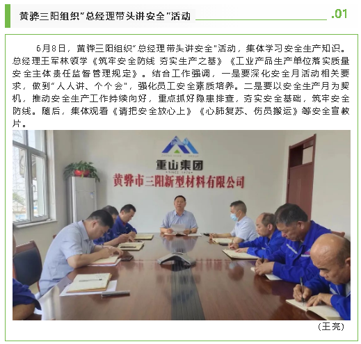 【安全生產(chǎn)月專欄】黃驊三陽組織“總經(jīng)理帶頭講安全”活動、重山思沃瑞開展“安全生產(chǎn)月”啟動儀式