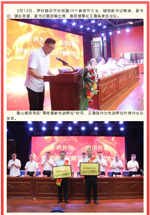 重山集團(tuán)榮獲“尊師重教先進(jìn)單位”
