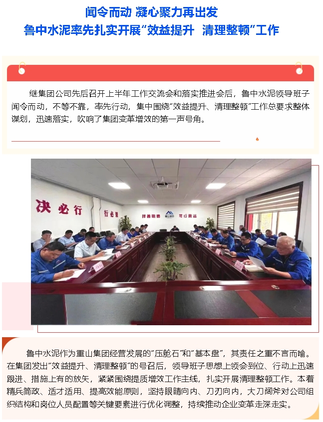 【頭條】聞令而動 凝心聚力再出發(fā)——魯中水泥率先扎實開展“效益提升 清理整頓”工作