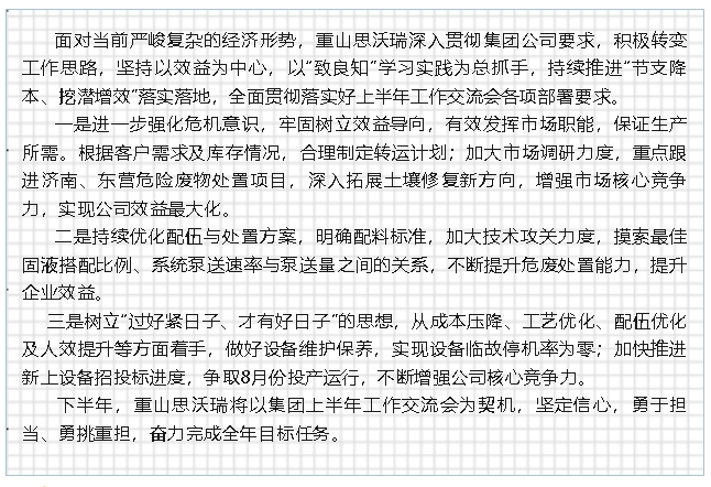 【貫徹落實年中會議精神】下半年怎么干——重山思沃瑞