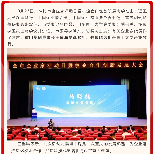 【頭條】重山集團(tuán)參加全市企業(yè)家活動日暨校企合作創(chuàng)新發(fā)展大會
