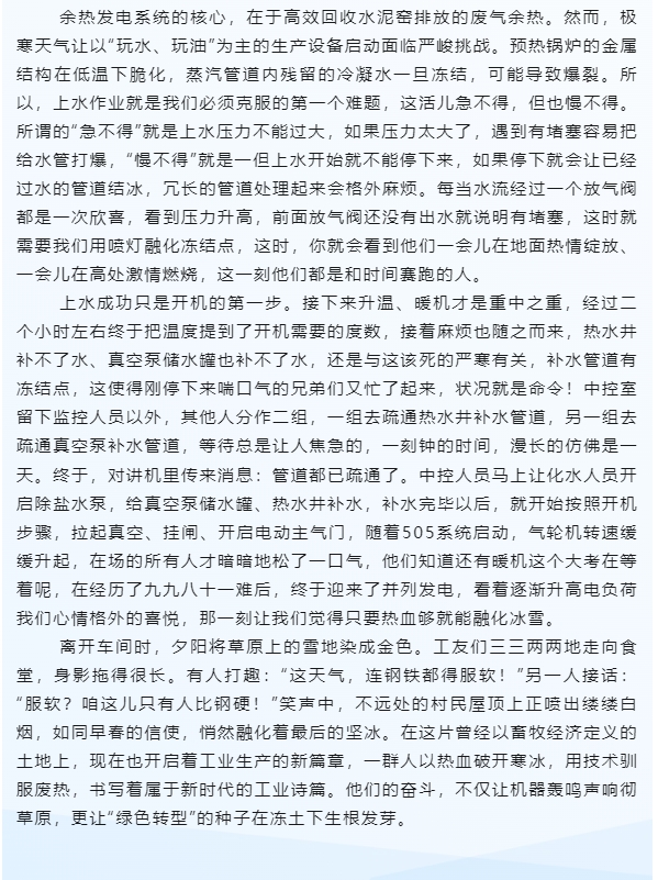 【一線風(fēng)采】破冰——魯蒙水泥余熱發(fā)電車間的早春戰(zhàn)歌