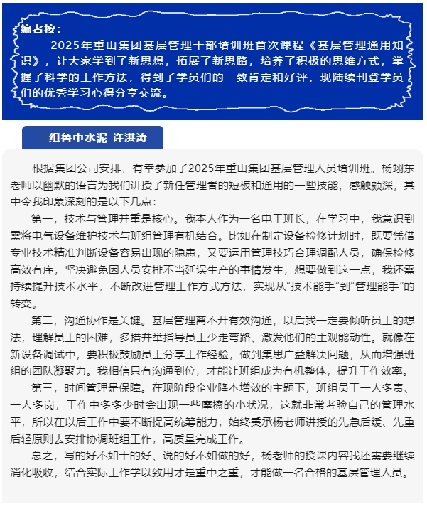 【心得分享】集團(tuán)基層管理干部培訓(xùn)心得分享(一)