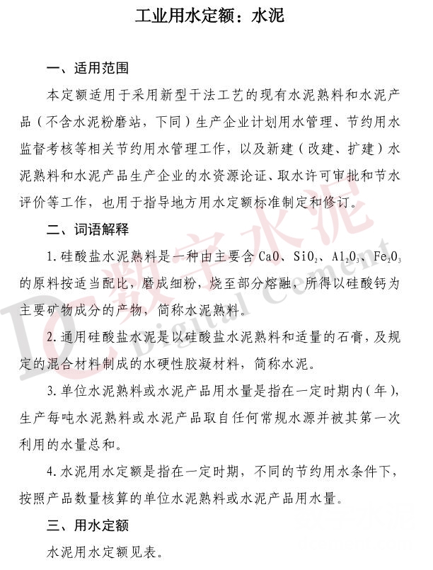 【轉(zhuǎn)載】?jī)刹课“l(fā)水泥工業(yè)用水定額,2021年2月1日起施行!