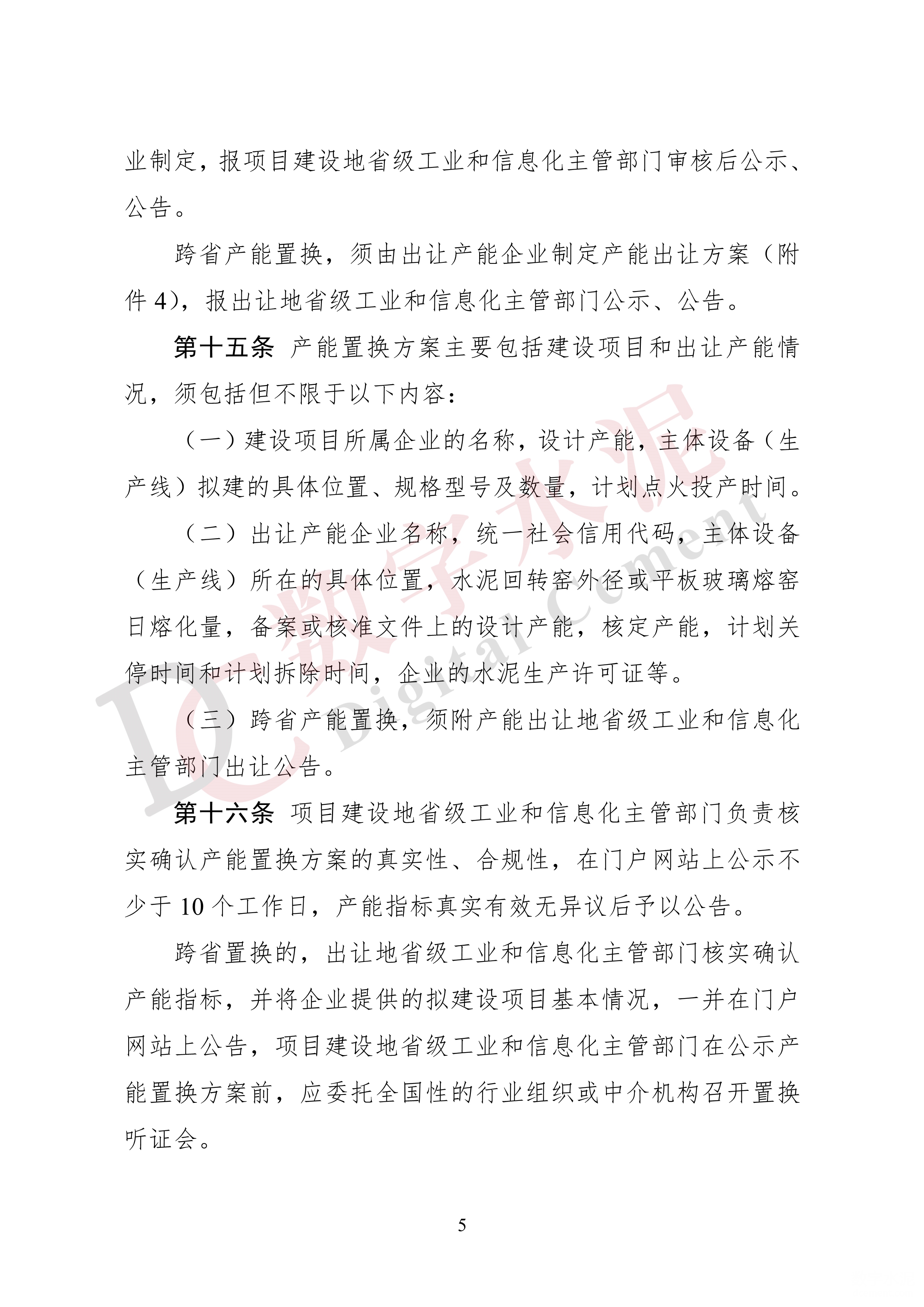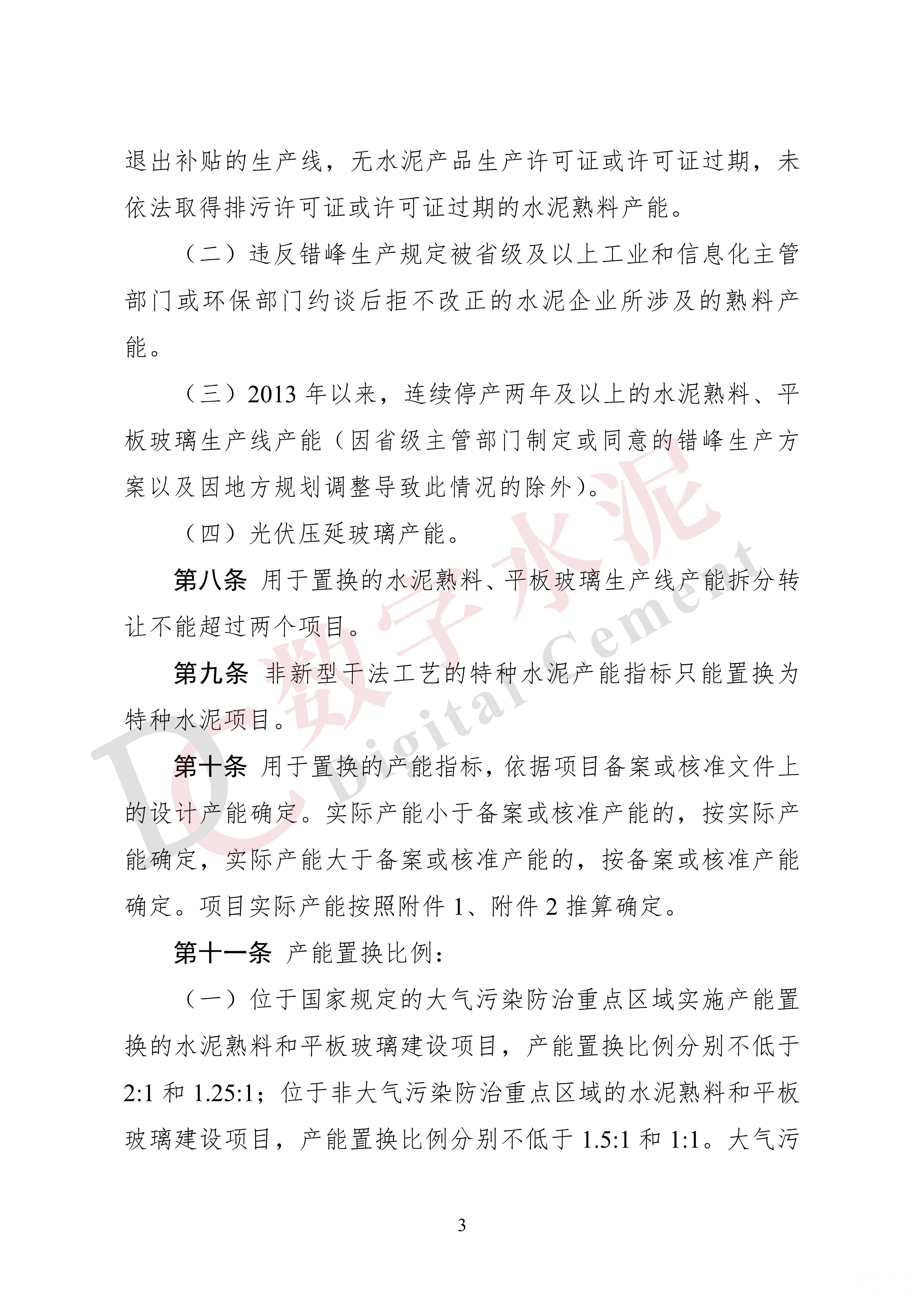 (二)產(chǎn)能指標的認定更加嚴格。一是強調(diào)了產(chǎn)能指標必須在各省按年度更新并公告的本地區(qū)生產(chǎn)線清單內(nèi)。二是為避免“僵尸產(chǎn)能”復(fù)活,規(guī)定連續(xù)停產(chǎn)兩年及以上的水泥熟料、平板玻璃生產(chǎn)線不能用于產(chǎn)能置換。三是明確跨省置換應(yīng)召開聽證會,接受公眾和媒體監(jiān)督。