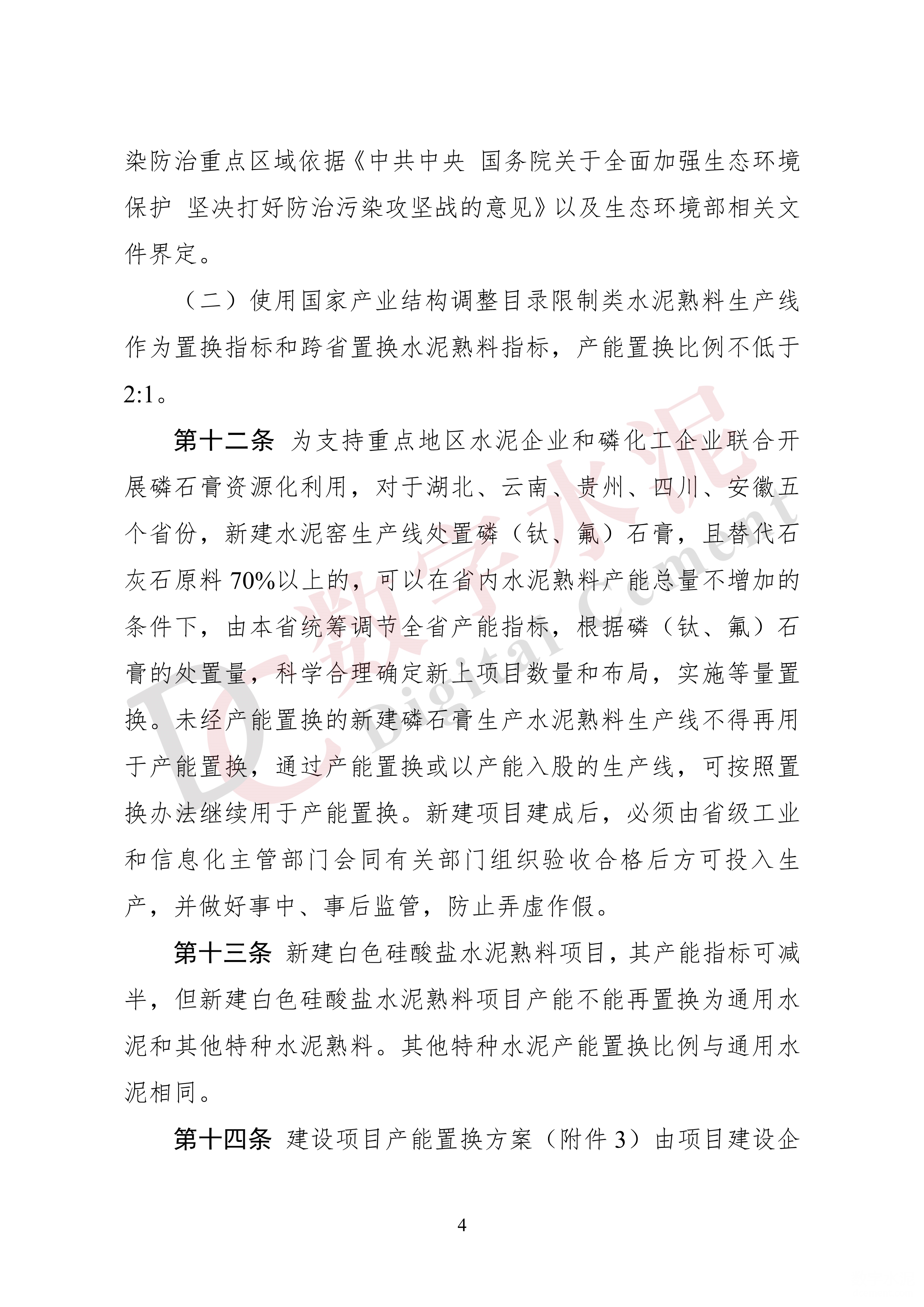 (一)置換比例和置換范圍根據(jù)新形勢做了調(diào)整。一是提高了水泥項目產(chǎn)能置換比例,大氣污染防治重點區(qū)域水泥項目由1.5:1調(diào)整至2:1,非大氣污染防治重點區(qū)域由1.25:1調(diào)整至1.5:1。二是加大低效產(chǎn)能壓減力度,對產(chǎn)業(yè)結(jié)構(gòu)調(diào)整目錄限制類的水泥產(chǎn)能以及跨省置換水泥項目,產(chǎn)能置換比例一律不低于2:1。三是鼓勵固廢綜合利用,湖北、貴州等五省磷(鈦、氟)石膏生產(chǎn)水泥項目產(chǎn)能可實施等量置換。四是保障光伏發(fā)展需要,新上光伏壓延玻璃項目不再要求產(chǎn)能置換。