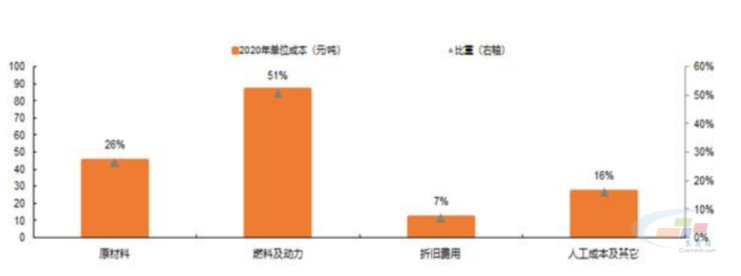 水泥是傳統(tǒng)的高能耗行業(yè),能源成本占水泥生產(chǎn)成本的50%以上。以海螺水泥為例,2020年燃料及動力成本占51%,原材料占比26%,折舊占比7%,人工成本及其它占16%。鑒于2021年煤炭價格大漲,燃料成本或?qū)⒏摺?/strong>